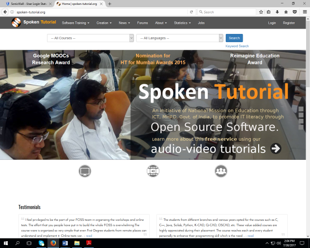The Spoken Tutorial project is the initiative of the ‘Talk to a Teacher’ activity of the National Mission on Education through Information and Communication Technology (ICT), launched by the Ministry of Human Resources and Development, Government of India. The use of spoken tutorials to popularize software development and its use will be coordinated through this website.